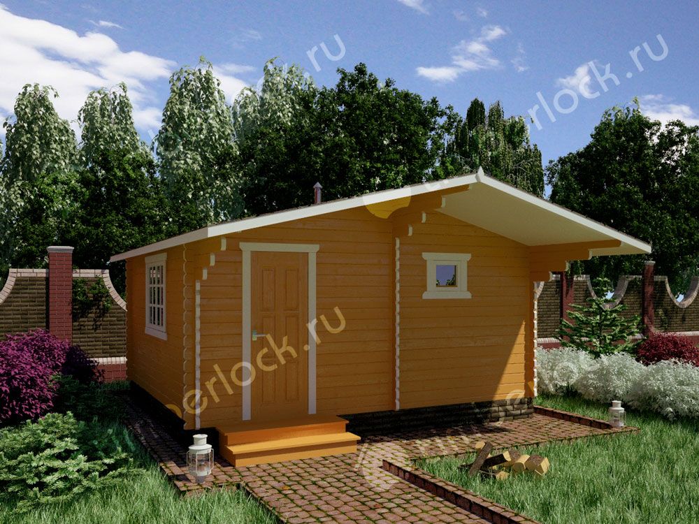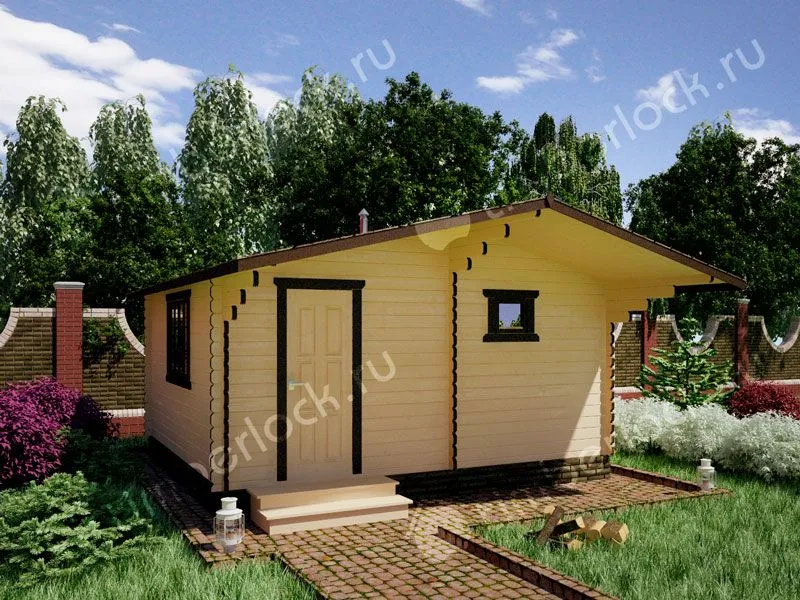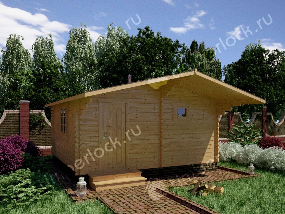 Лаконичная небольшая дачная баня с предбанником из строганного или клееного бруса.