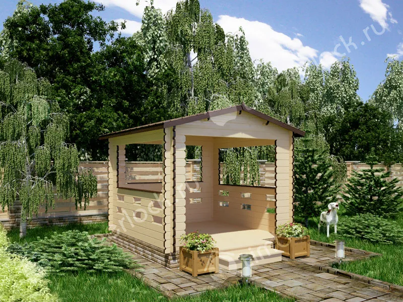 Лёгкая открытая небольшая беседка размером 3х3м для загородного участка. Подойдёт для летнего отдыха на небольших садовых участках. Такая беседка будет прекрасным украшением любого дачного участка.