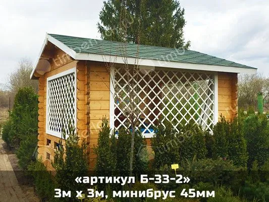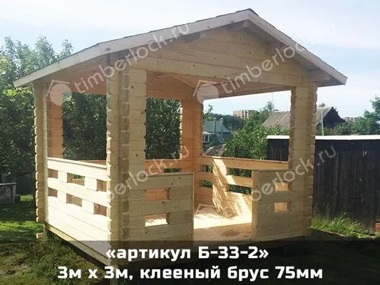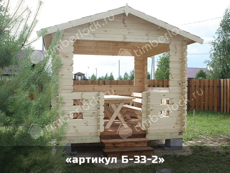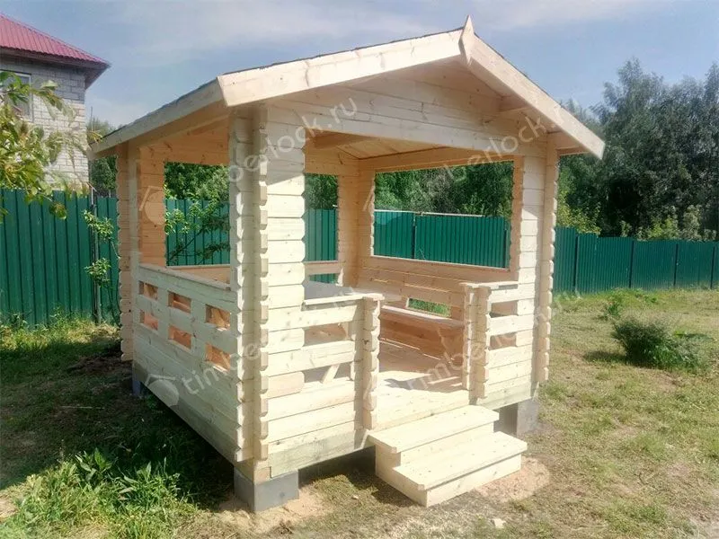 При изготовлении беседки используется профилированный брус камерной сушки. Благодаря этому не требуется усадка и беседка готова к эксплуатации сразу после окончания строительства.