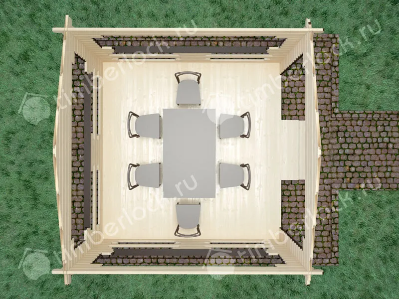 Отличный проект беседки для загородного участка. Беседка не застекленная и без сквозного прохода. Размеры 4х4м и площадь 13.8м2 позволяют разместиться достаточно большой компании.