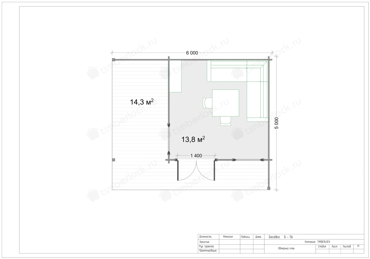 Уютная закрытая беседка для дачи с плоской крышей и большой открытой верандой.