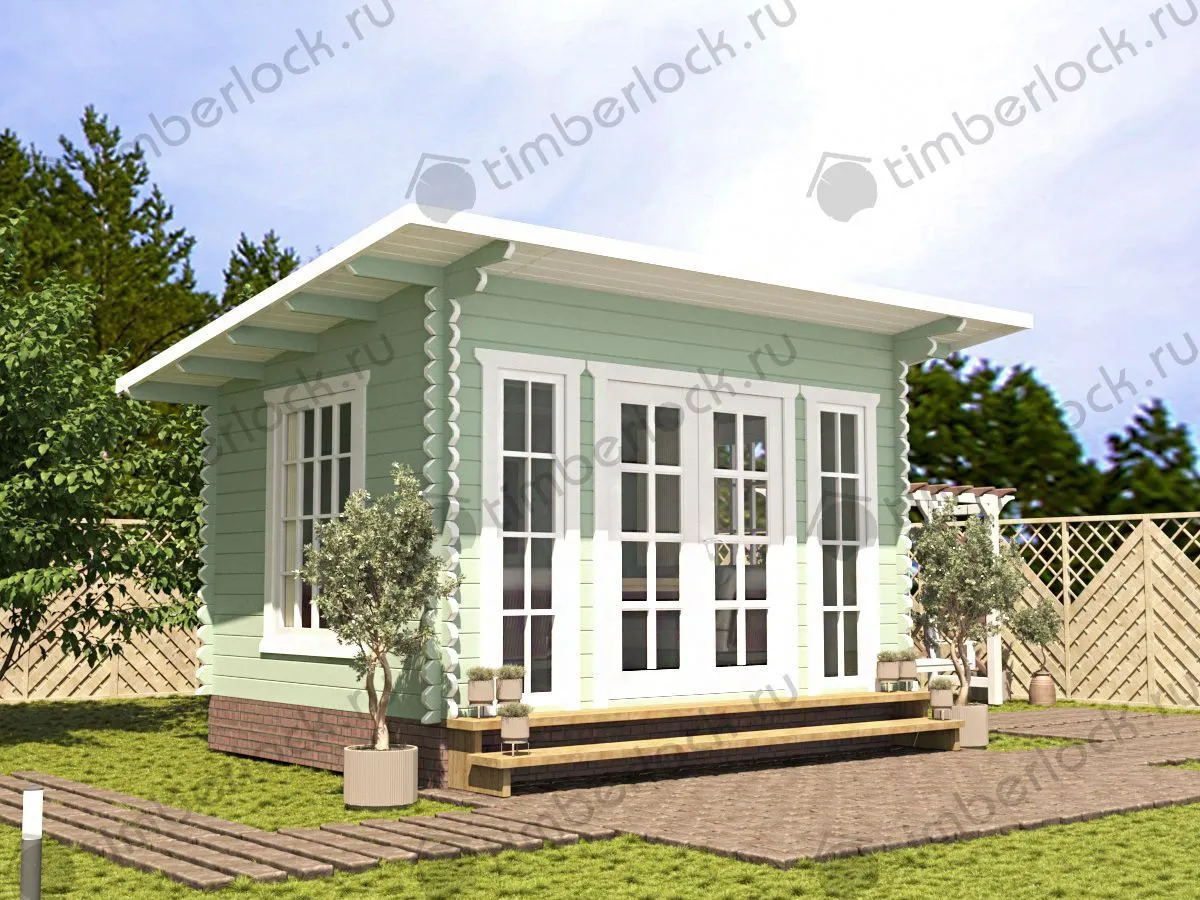 Уютная закрытая беседка для дачи с односкатной крышей и панорамным остеклением.