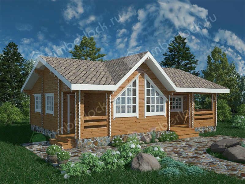 Уютный дачный коттедж в стиле шале с двумя спальнями, гостиной, кухней, санузлом и верандой.