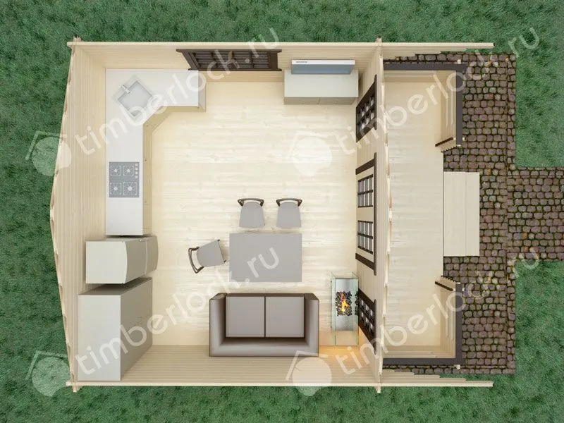 Небольшой дачный домик с одной комнатой и маленькой верандой - отличное решение для организации летней кухни или места отдыха на садовом участке.