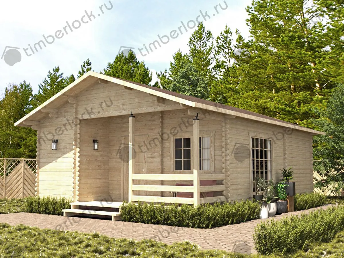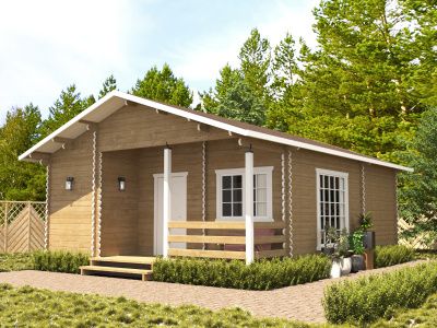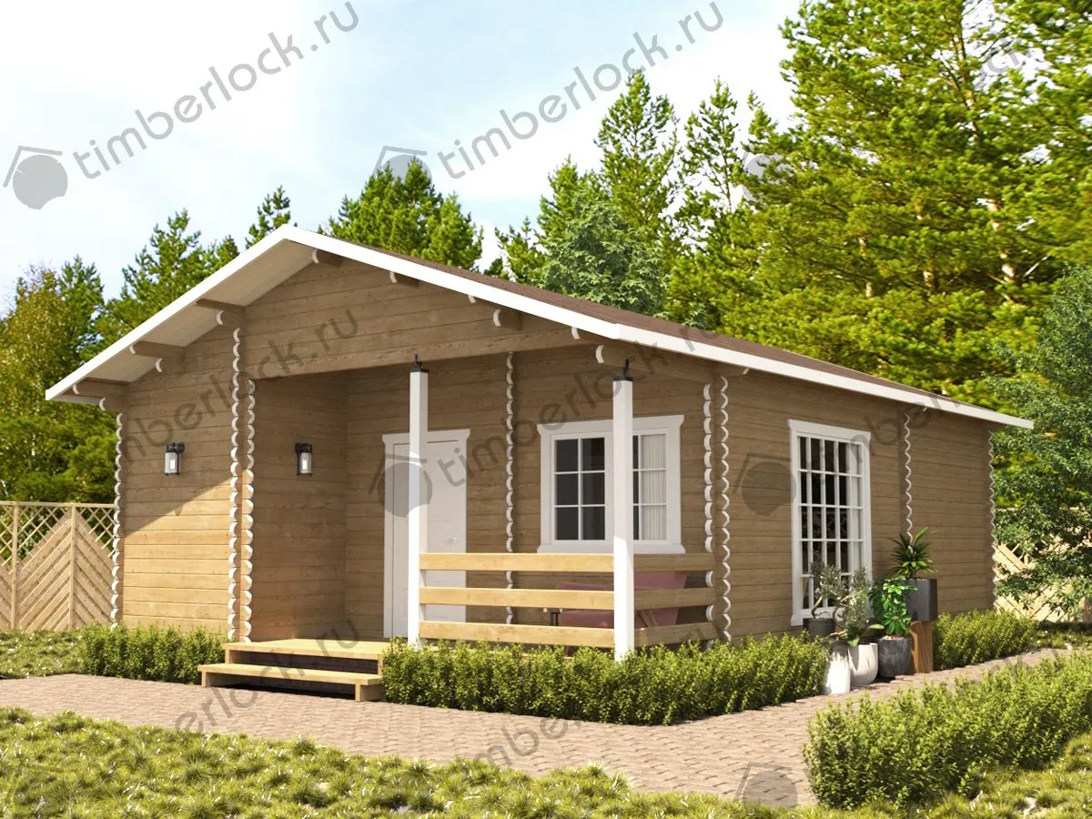 Дачный домик с небольшой террасой, гостиной и двумя спальнями.