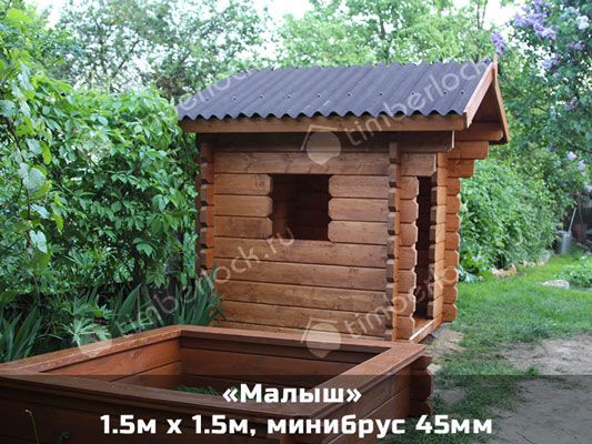 Типовой проект маленького игрового детского домика из бруса толщиной 45мм - отличный вариант для веселого и беззаботного времяпрепровождения Вашего ребенка. Проектом предусмотрены открытые не застекленные окна и дверной проем. По желанию, проект может быть переработан или дополнен.