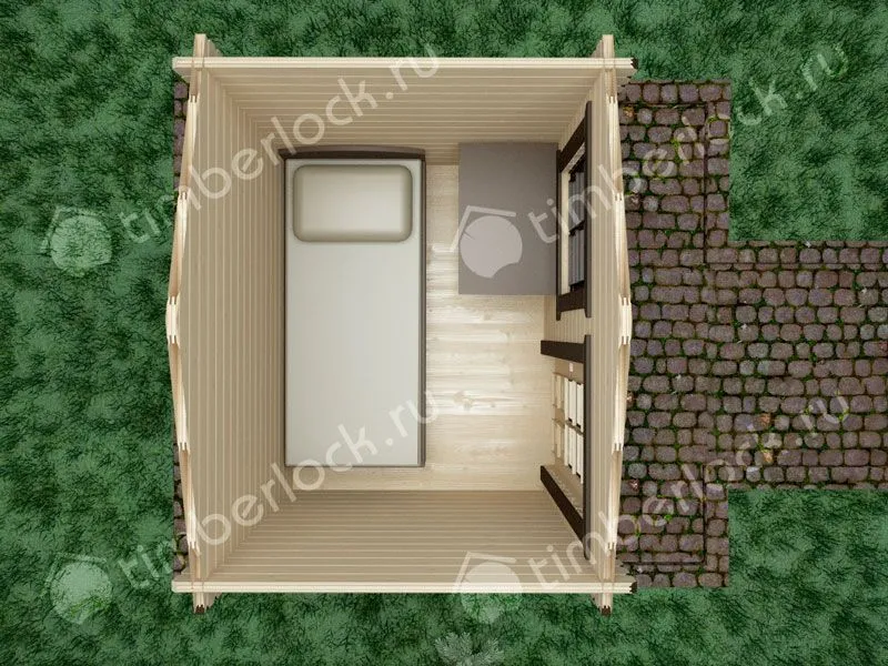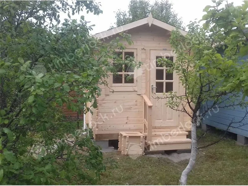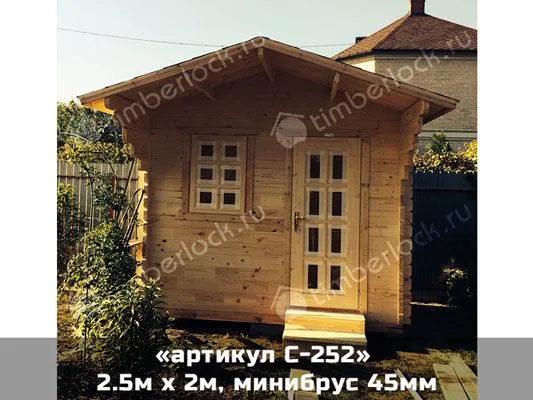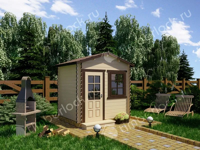 Маленький садовый домик для отдыха или хранения садового инвентаря - отличное решение для тех, кому не нужна большая постройка на территории. Проектом предусмотрено одно помещение общей площадью 3.8 м2 при габаритных размерах домика 2.5м на 2м. Дверь и полноразмерное окно располагается на переднем фасаде.