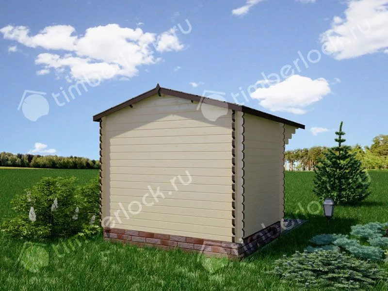 Лаконичный садовый домик с маленьким навесом.