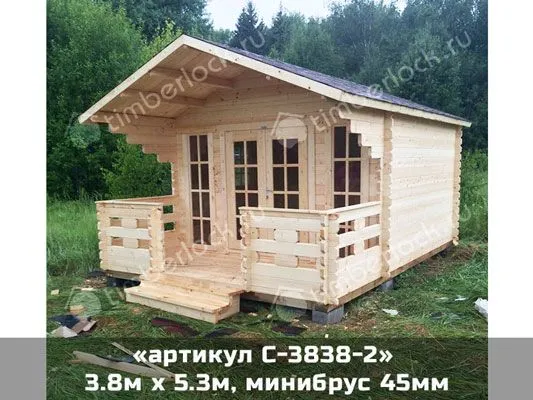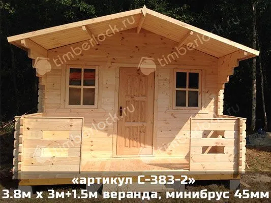Садовый домик с верандой 3.8м х 3м +1.5м веранда.