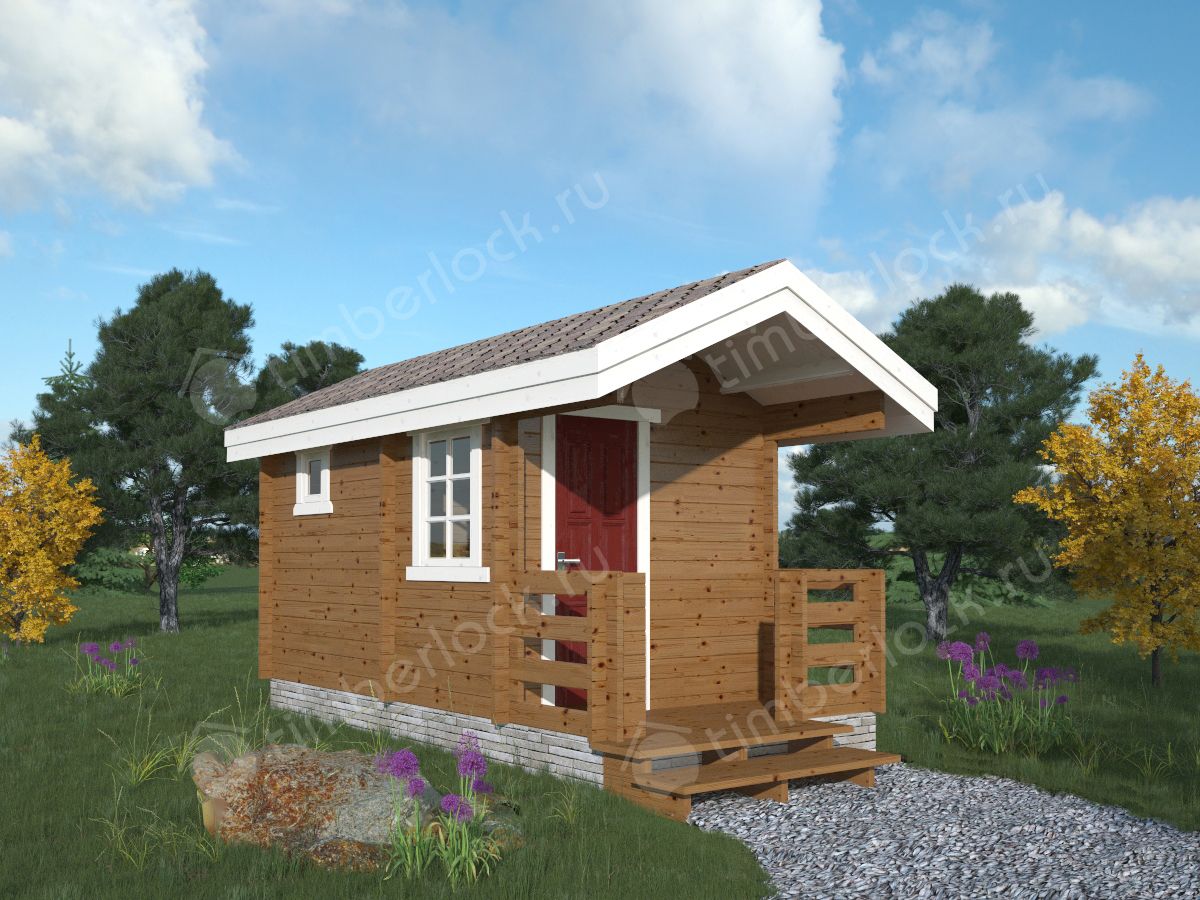 Эта компактная мини-банька подойдёт для небольшого садового участка. При небольших размерах в этой планировке есть полноценная парилка 2х2м и предбанник с местом для душевой кабины и небольшая веранда. Дровяная печь с панорамным стеклом придаст уют и комфорт вашему отдыху. Это отличный вариант бани для 2-4 человек.