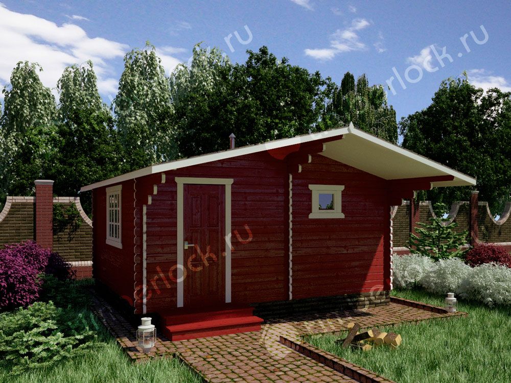 Лаконичная небольшая дачная баня с предбанником из строганного или клееного бруса.