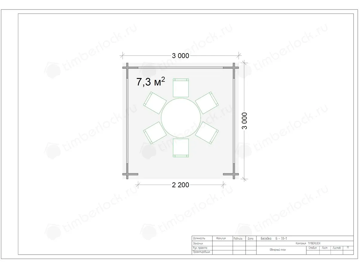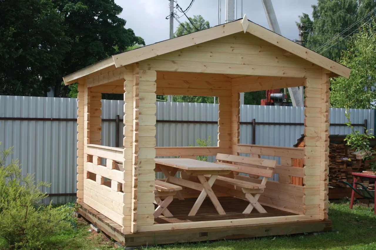 Лёгкая открытая небольшая беседка размером 3х3м для загородного участка. Подойдёт для летнего отдыха на небольших садовых участках. Такая беседка будет прекрасным украшением любого дачного участка.