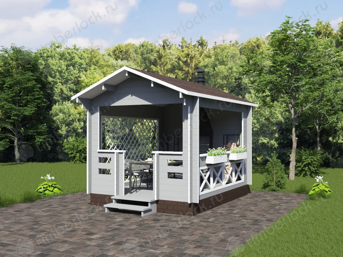 Торцы стен прямые, что придаёт беседке более строгий стиль. При желании можно торцы сделать фигурные, как на большинстве наших проектов.