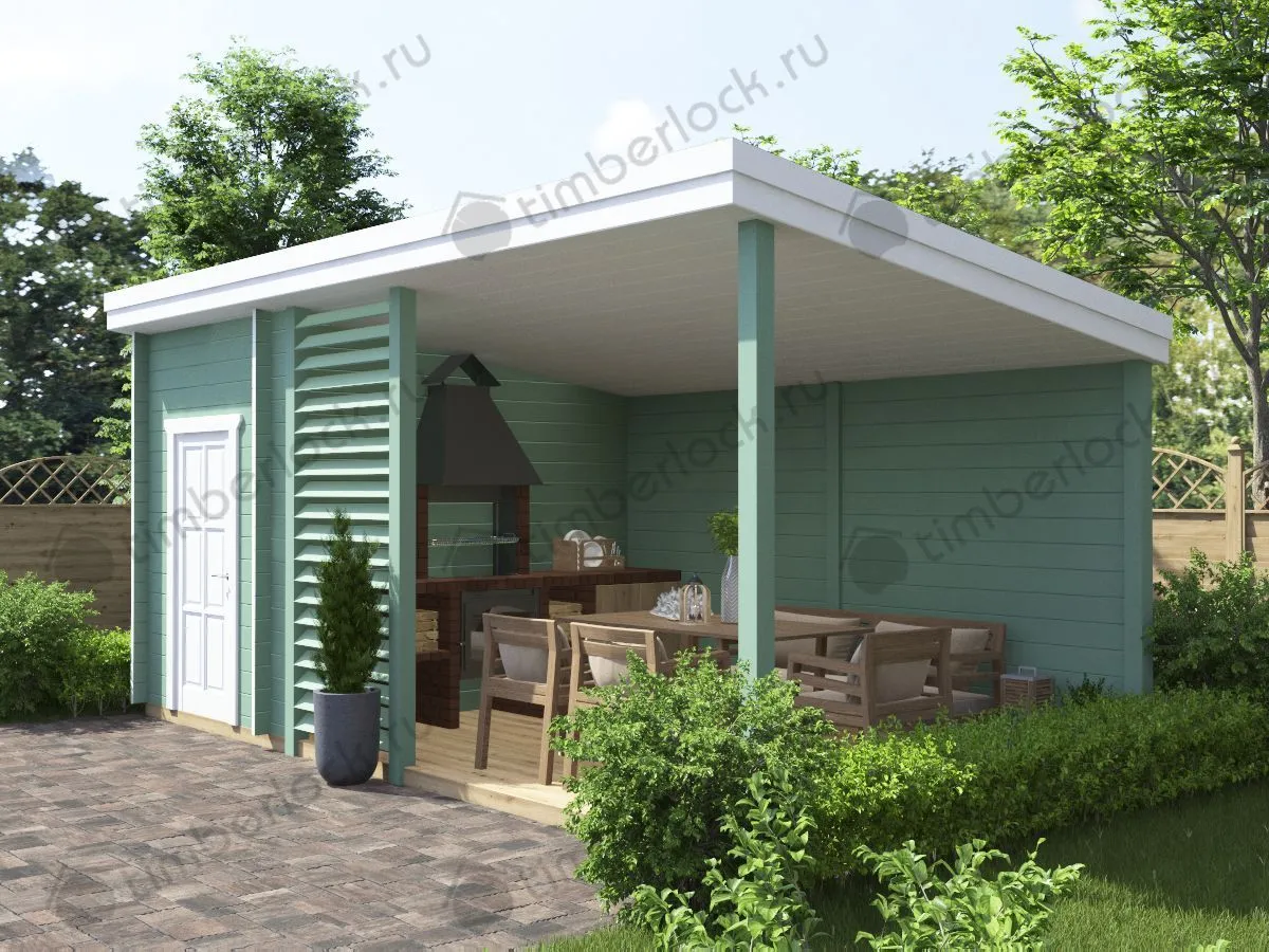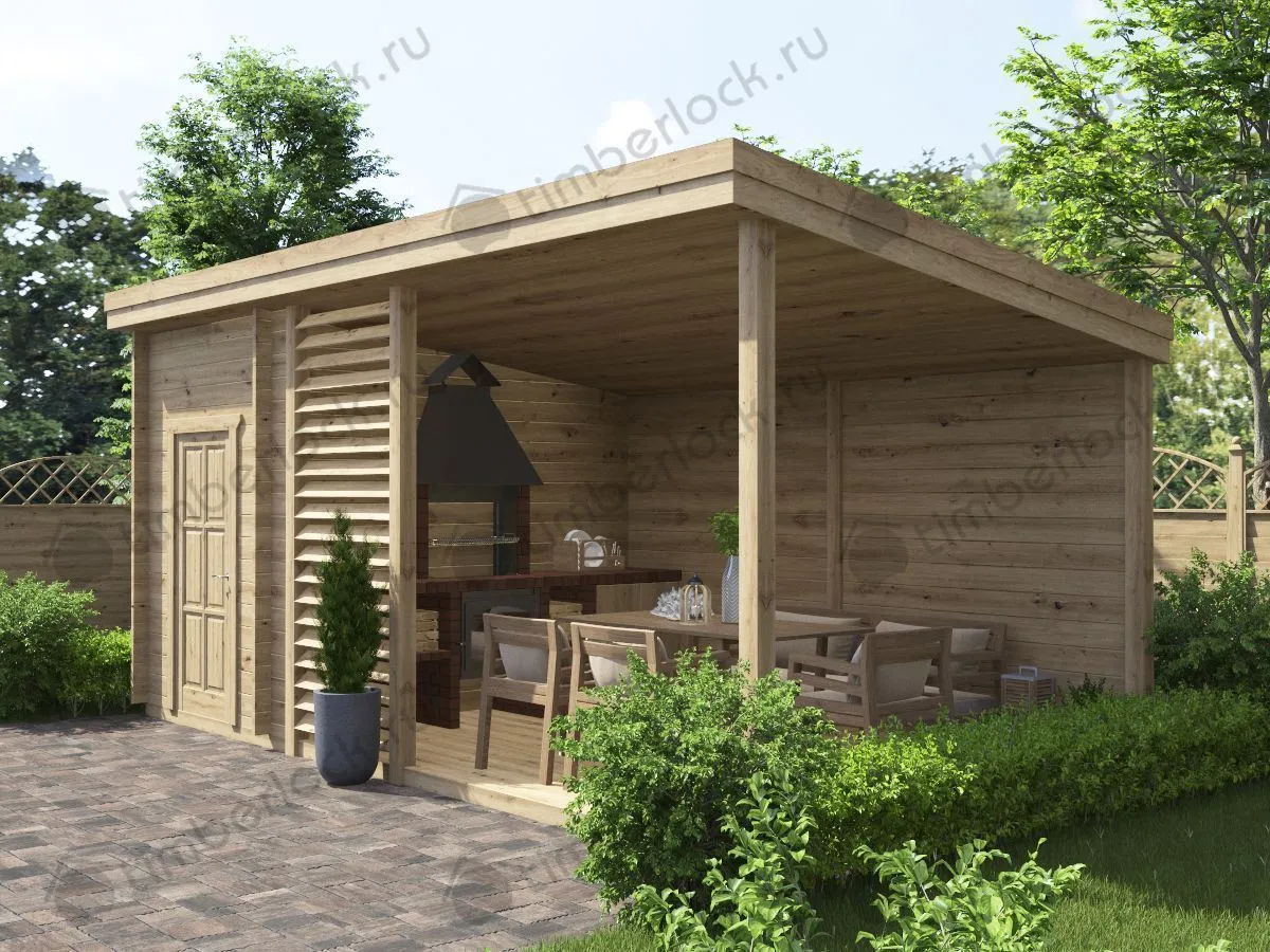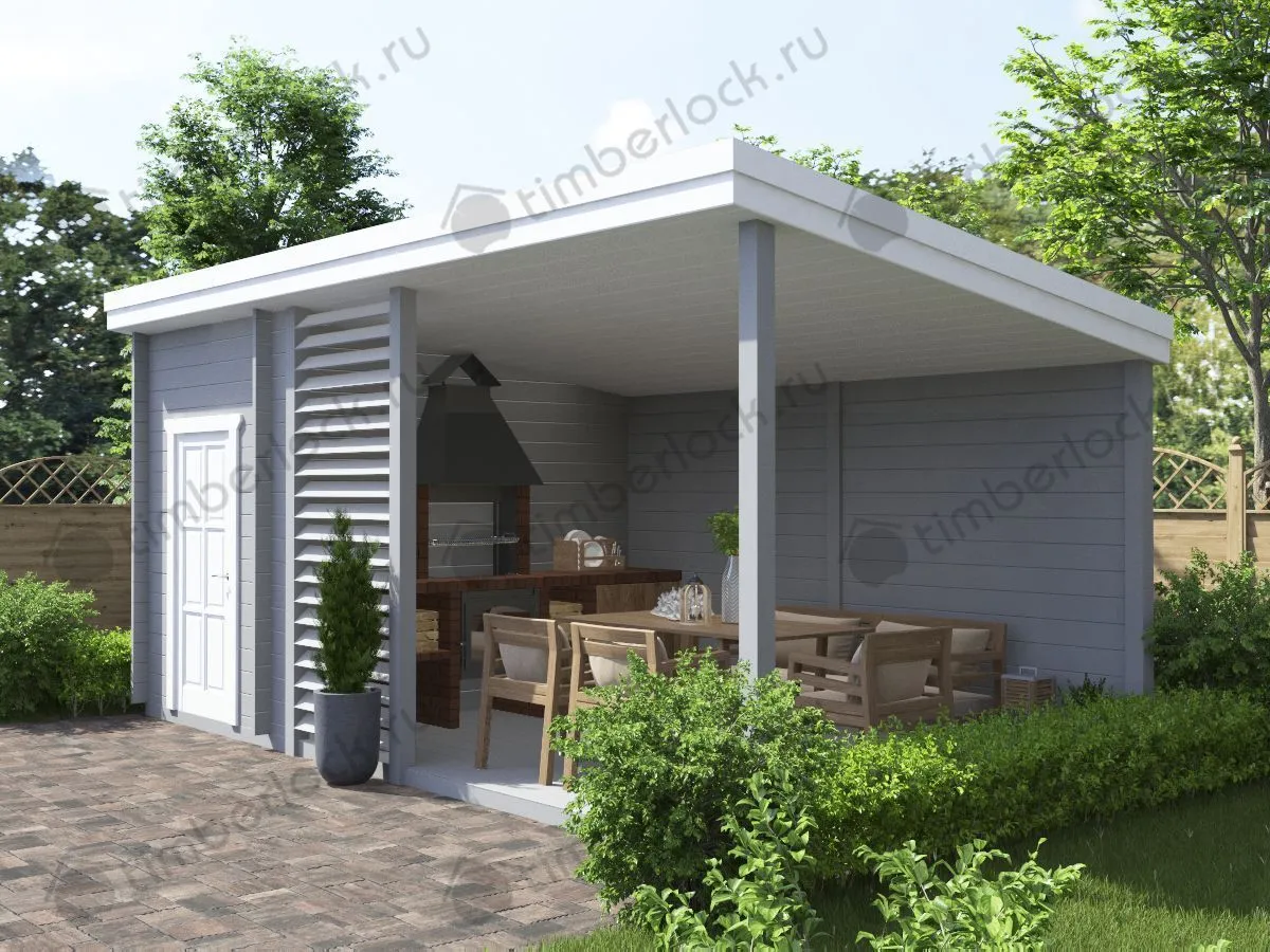 Просторная открытая беседка является отличным местом для отдыха большой дружной компании, а вместительный хозблок позволяет убрать на зимнее время мебель с открытой части беседки, а также хранить садовый инвентарь. Площадь беседки позволяет зонировать на полноценную зону барбекю и место для отдыха за столом.