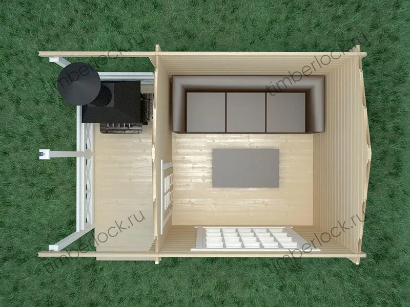 Универсальный вариант теплой беседки с большим панорамным окном на боковом фасаде. При размерах 4.5х3м и площади 11.8 м2 эта беседка является отличным вариантом для организации отдыха на Вашем дачном участке.