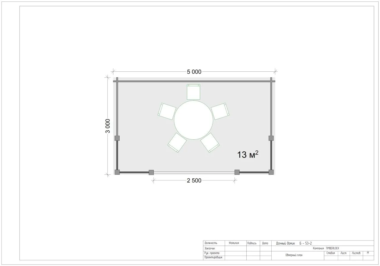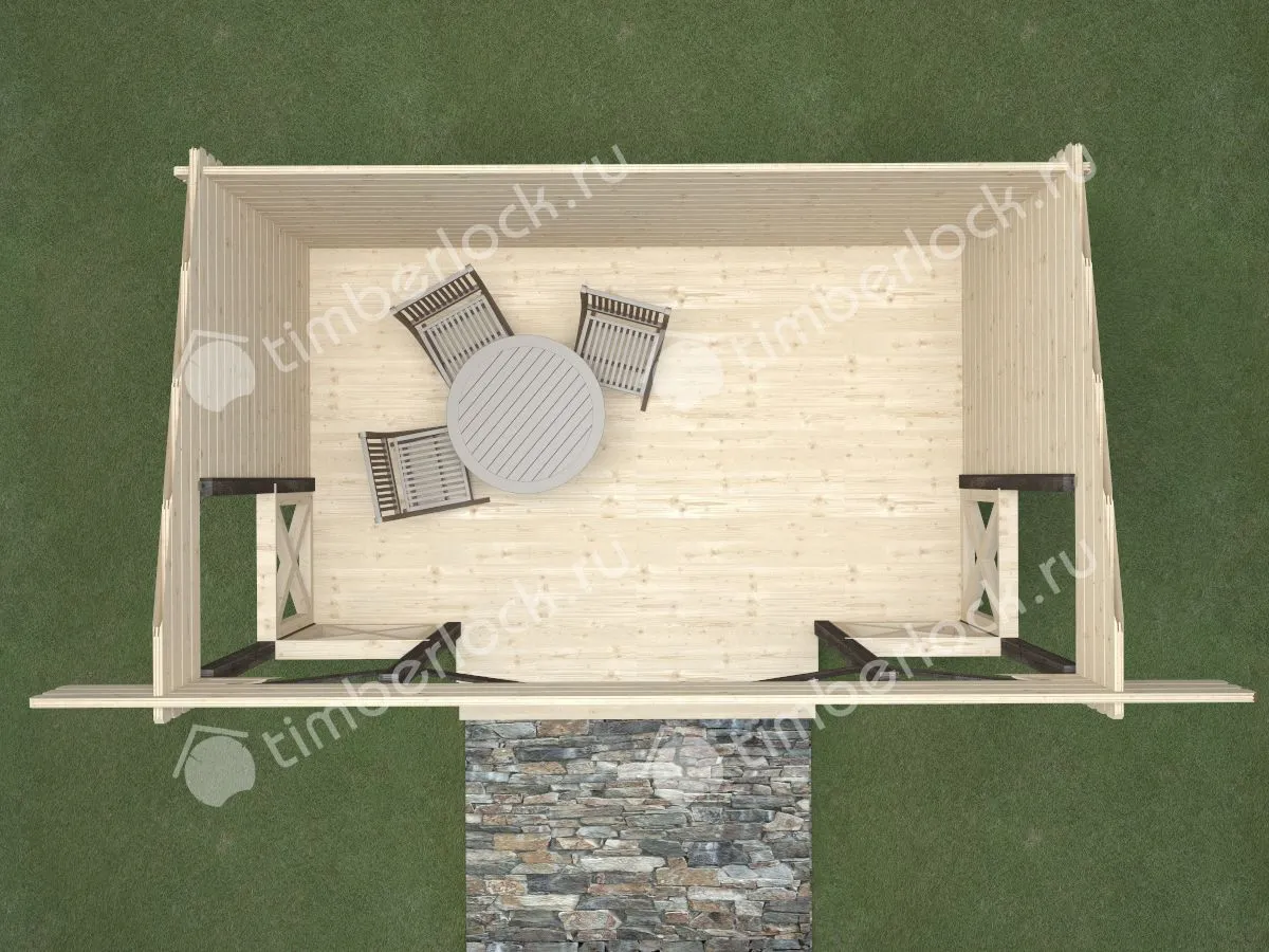 Интересный вариант открытой беседки для загородного дома. Полезная площадь составляет 13м2 при размерах 3х5м.