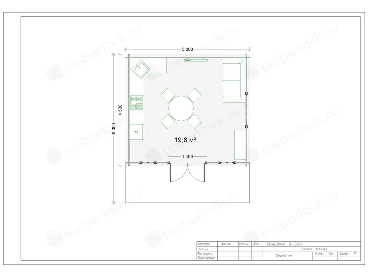 Универсальный дачный домик с одной большой комнатой, одним окном на боковом фасаде и двойными распашными дверьми.