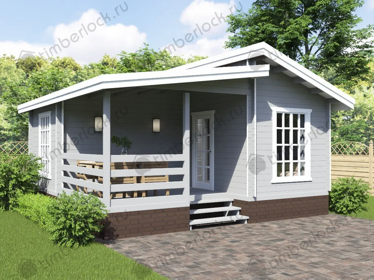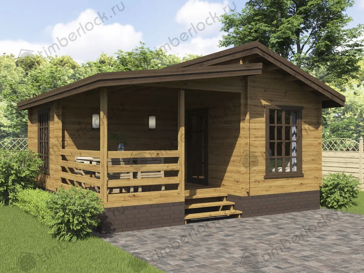 Проект дачного домика с одной спальней. Такая планировка позволяет комфортно разместиться небольшой семье до 3-х человек .