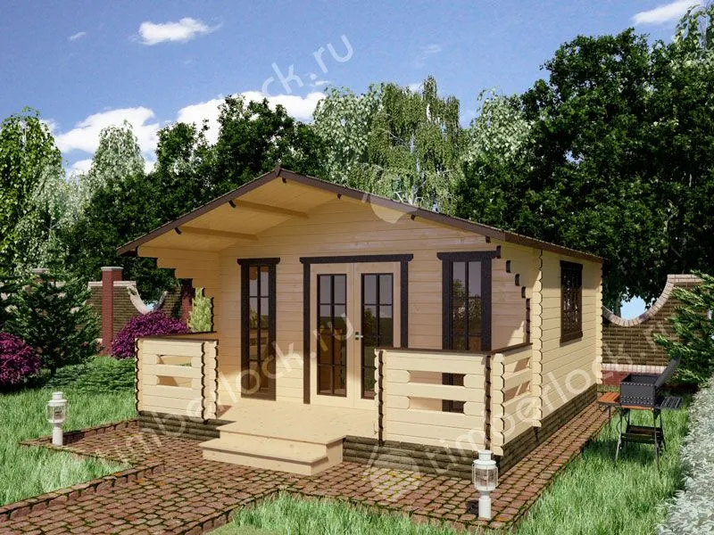 Небольшой дачный домик с одной комнатой и маленькой верандой - отличное решение для организации летней кухни или места отдыха на садовом участке.