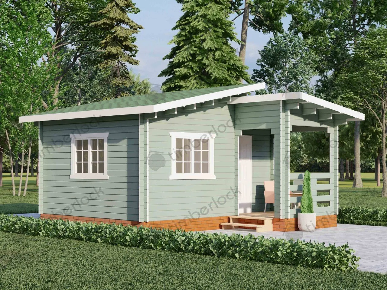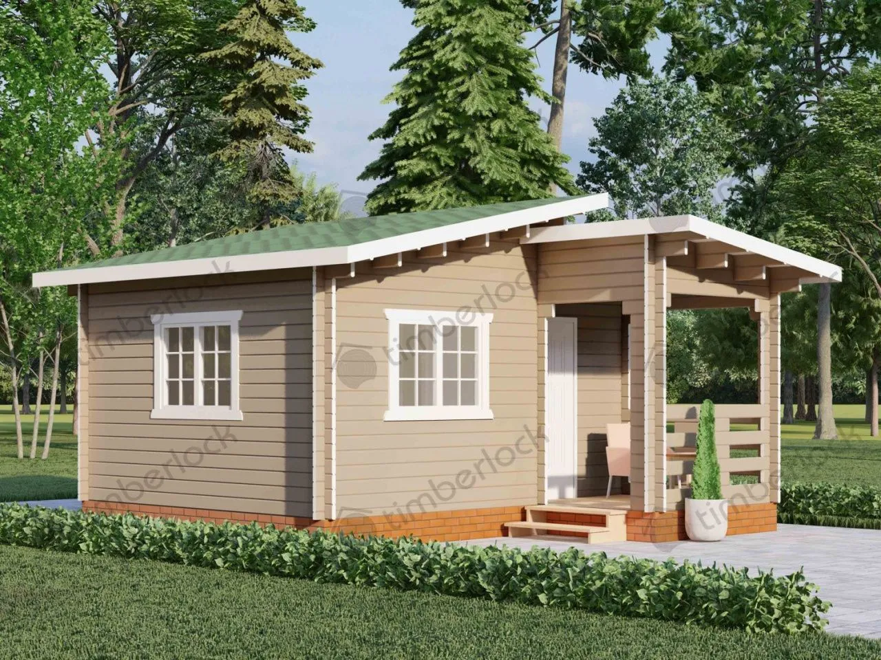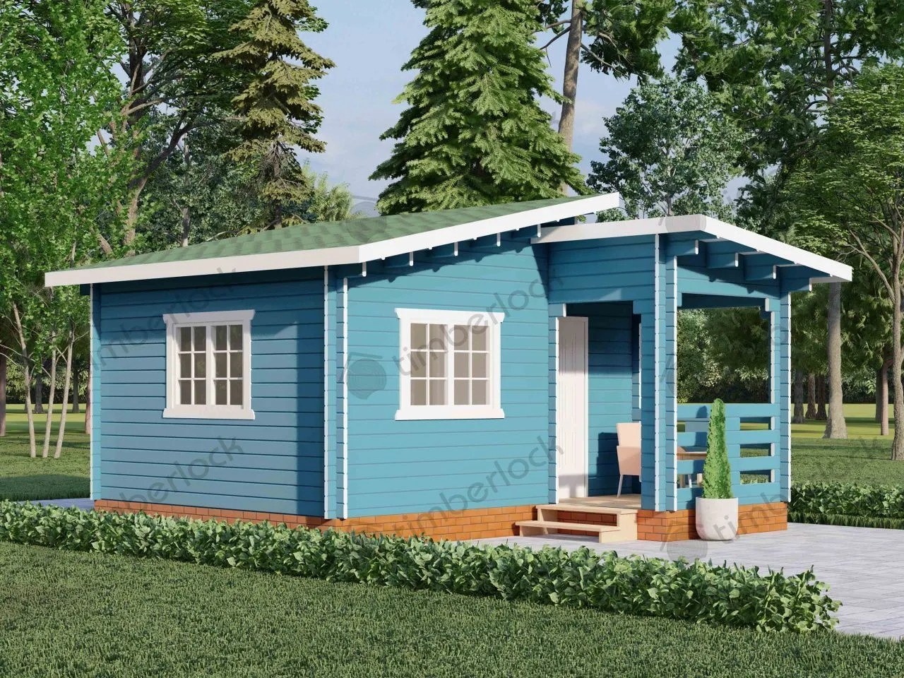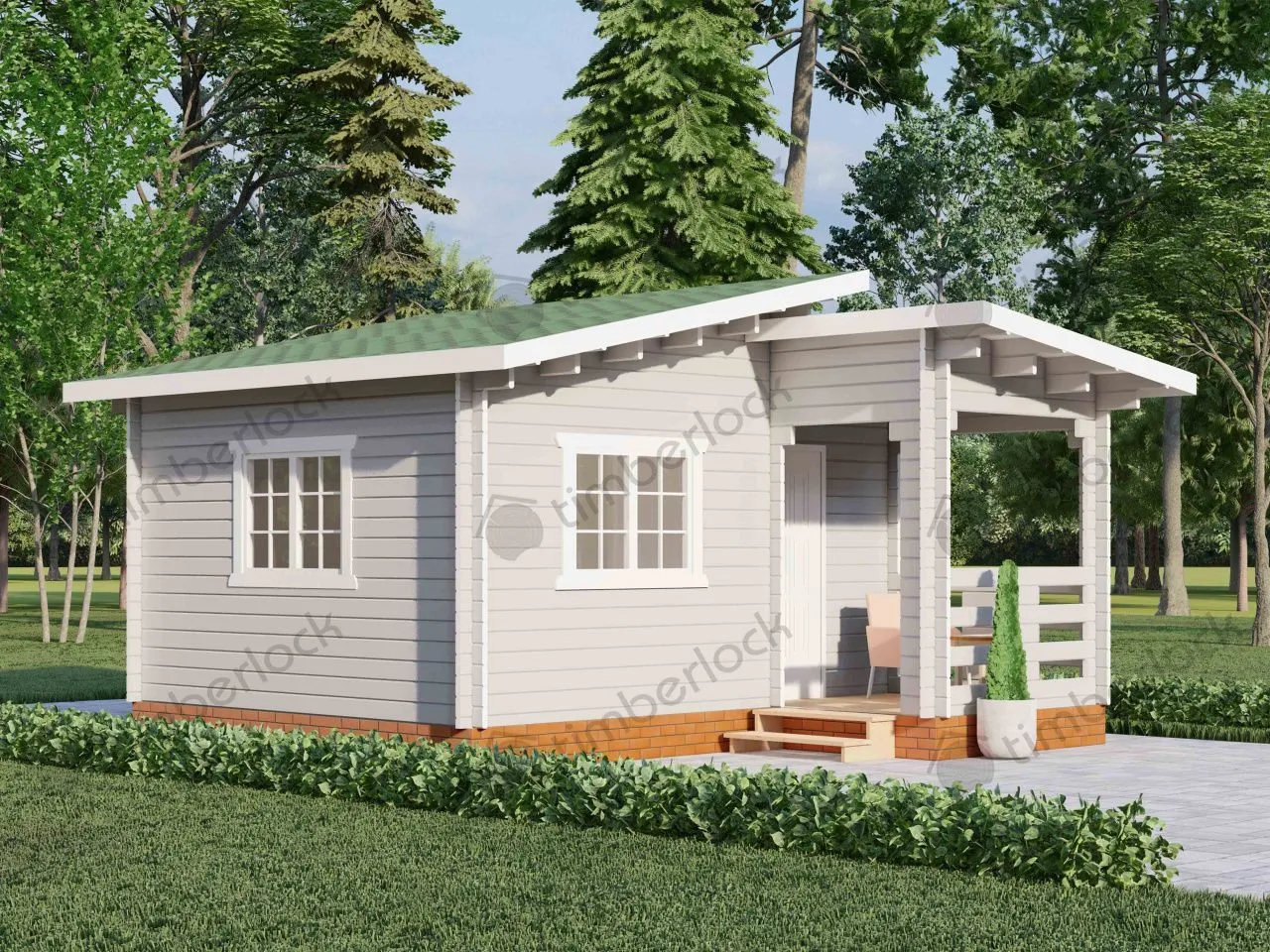 Садовый домик средних размеров с небольшим крыльцом - отличное решение для небольшого дачного участка. Можно использовать для временного проживания в дачный сезон с весны до осени.