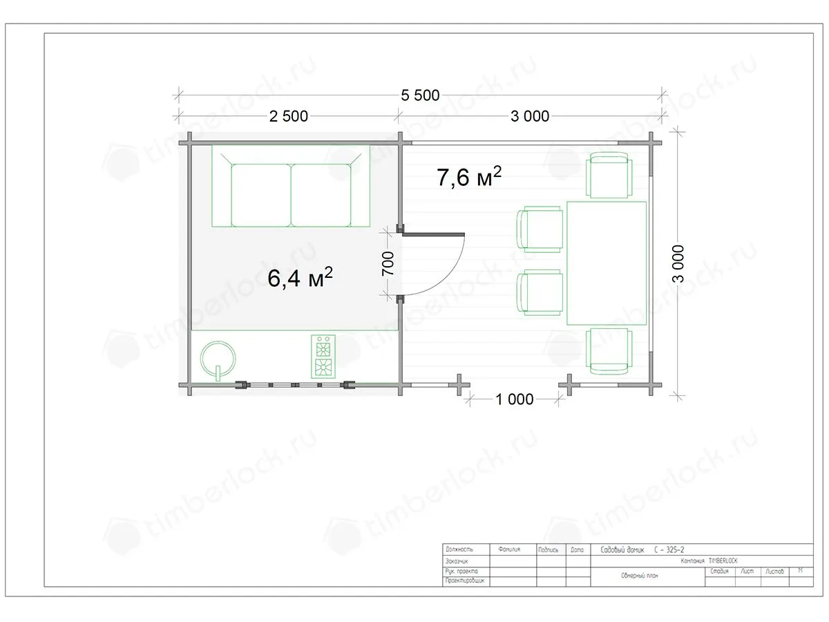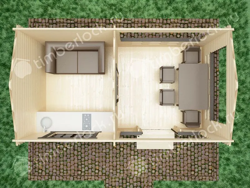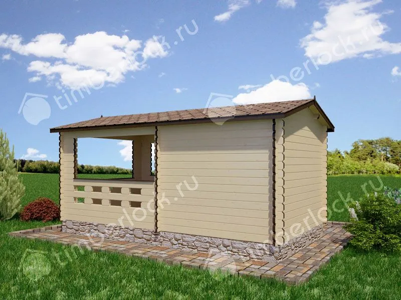Одноэтажный садовый домик из минибруса, разделенный на 2 блока.
