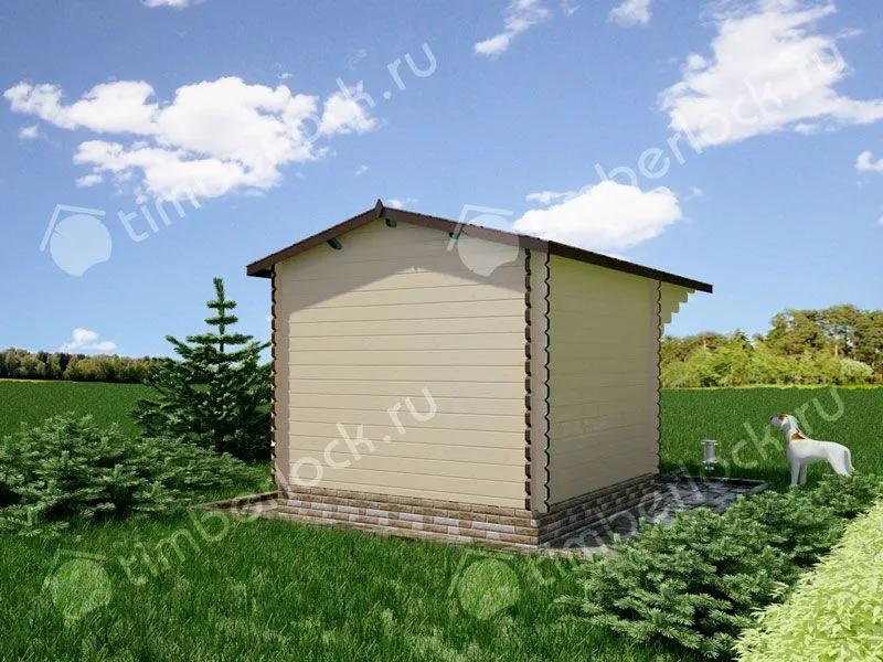 Компактный садовый домик с навесной крышей.