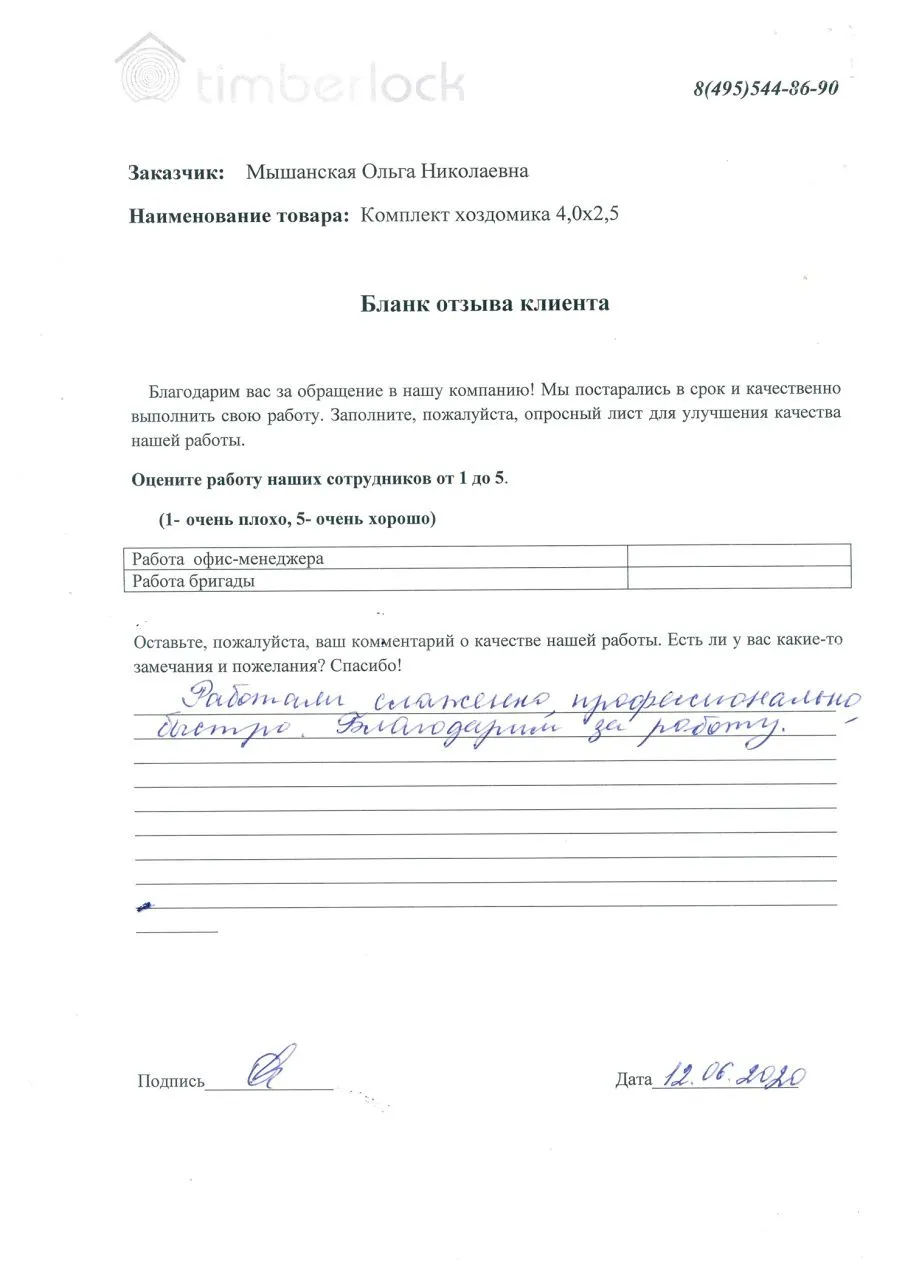 Хочу выразить огромную благодарность компании "Тимберлок", за быстрое, качественное, профессиональное строительство моего красивого хозблока (под ключ). Рабочая команда слажена, замечательные ребята, знающие свое дело. Выполнили за 1 день, точно в срок! А также благодарность их руководству. Мне очень все понравилось. Рекомендую!!!